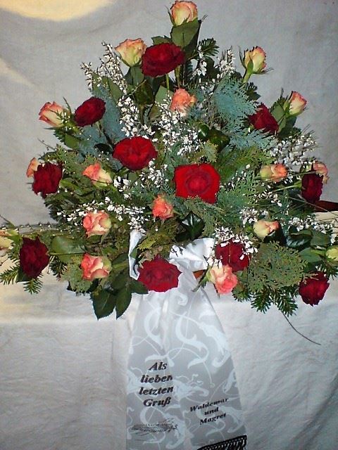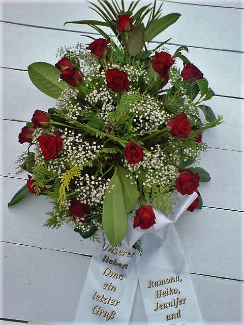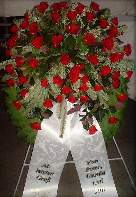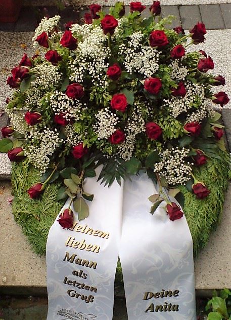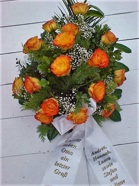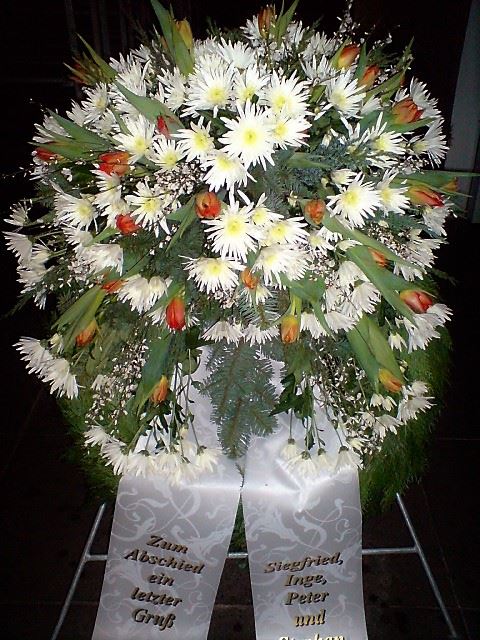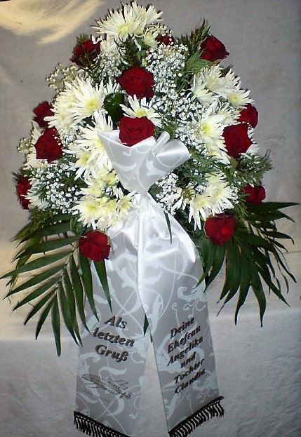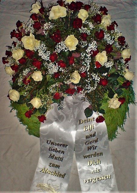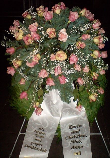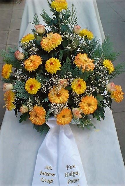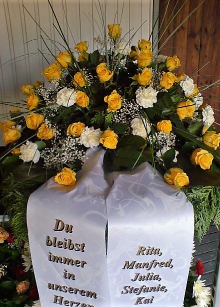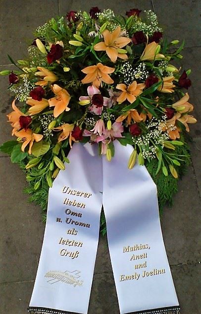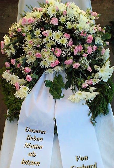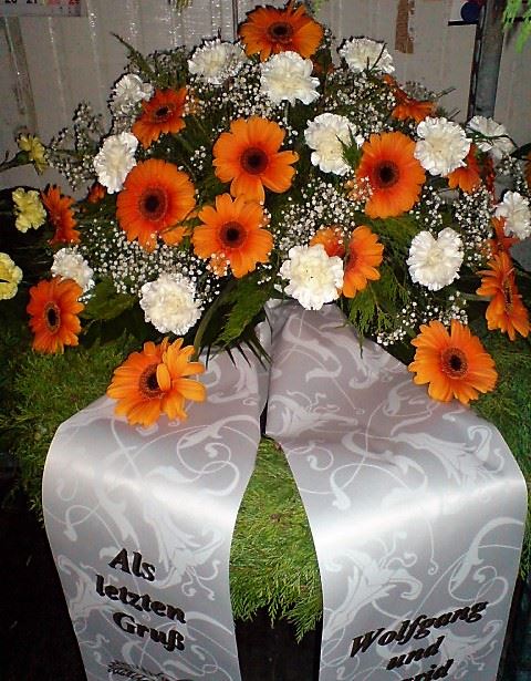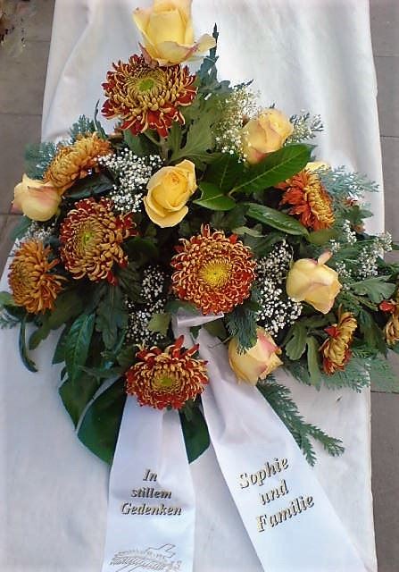 Die Geschichte der floralen Grabbeigaben ist so neu nicht. Bereits die Kelten, Ägypter, aber auch die Germanen ehrten Ihre Toten durch die Zugabe von Gegenständen und Blumen in die Grabstätte. Der Kranz als Gebindeform symbolisierte dabei den unendlichen Kreislauf des Lebens. Der Gedanke mit Blumen den Verstorbenen zu verabschieden, hat sich bis heute erhalten. In der Moderne angekommen, ist es jedoch nicht mehr so, dass es eine reine weiße Trauerblume (früher gerne Calla oder Chrysantheme) sein muss, sondern dass man gern die Lieblingsblumen des Verstorbenen in die engere Wahl nimmt, um somit nochmals eine innige persönliche und besondere Atmosphäre bei den Trauerfeierlichkeiten zu erzeugen.