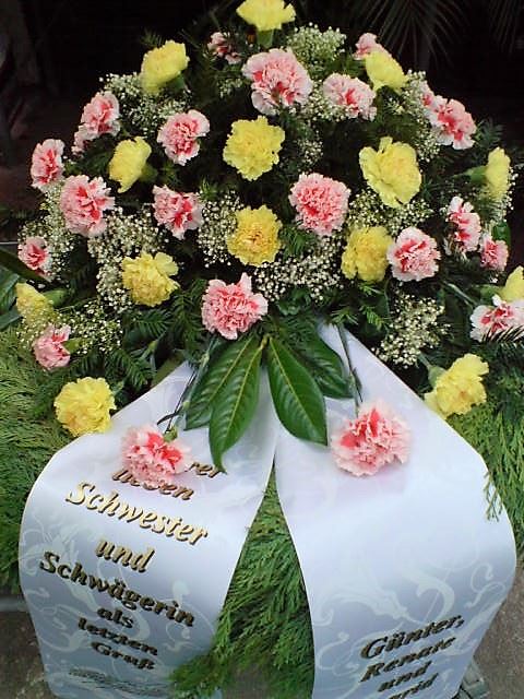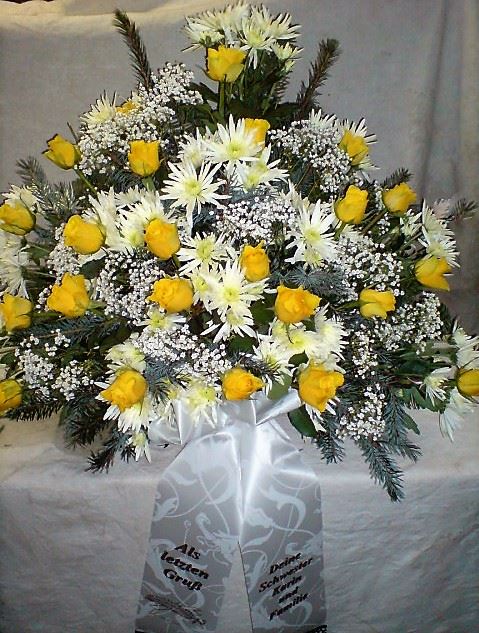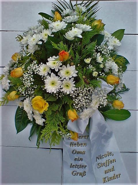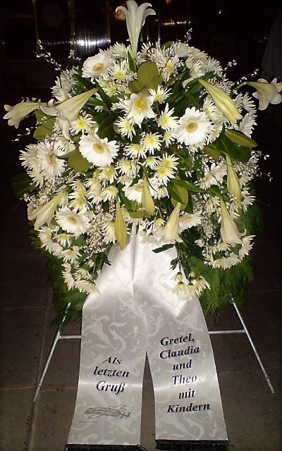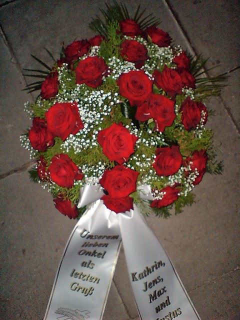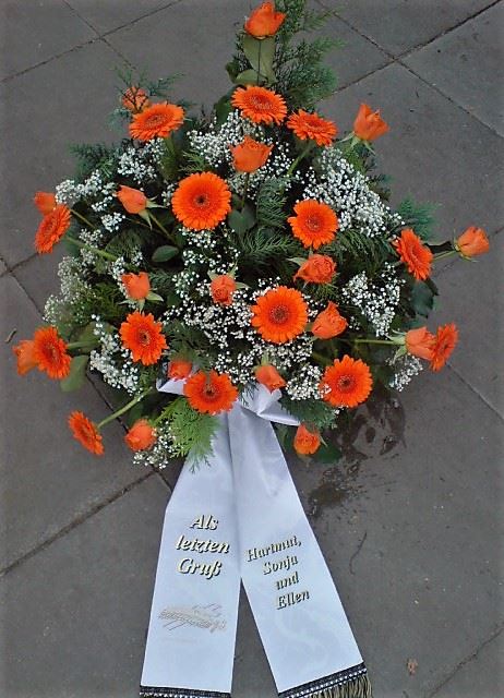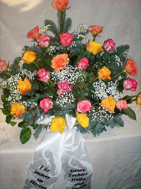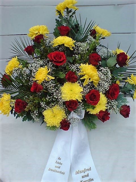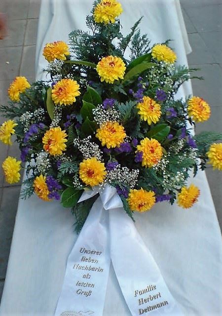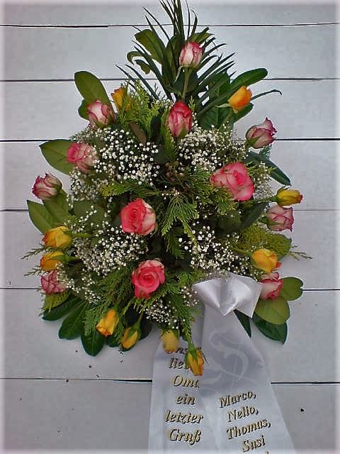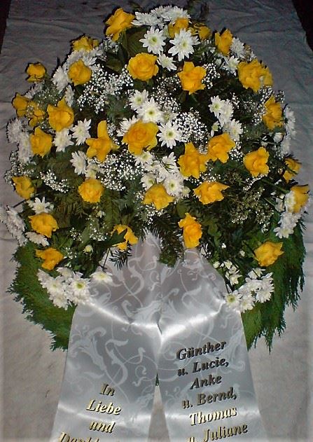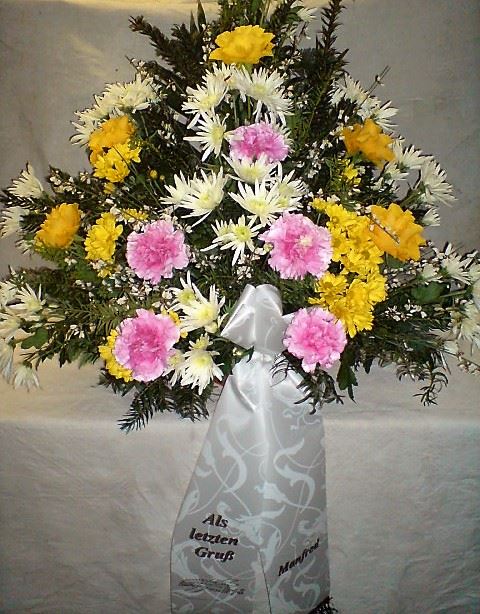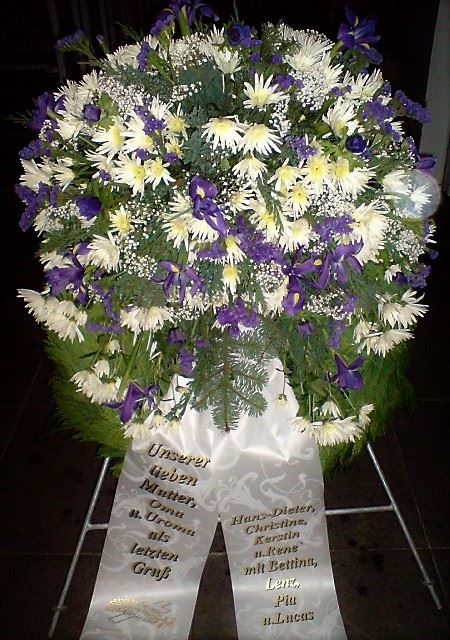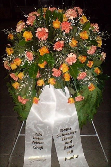 Die Geschichte der floralen Grabbeigaben ist so neu nicht. Bereits die Kelten, Ägypter, aber auch die Germanen ehrten Ihre Toten durch die Zugabe von Gegenständen und Blumen in die Grabstätte. Der Kranz als Gebindeform symbolisierte dabei den unendlichen Kreislauf des Lebens. Der Gedanke mit Blumen den Verstorbenen zu verabschieden, hat sich bis heute erhalten. In der Moderne angekommen, ist es jedoch nicht mehr so, dass es eine reine weiße Trauerblume (früher gerne Calla oder Chrysantheme) sein muss, sondern dass man gern die Lieblingsblumen des Verstorbenen in die engere Wahl nimmt, um somit nochmals eine innige persönliche und besondere Atmosphäre bei den Trauerfeierlichkeiten zu erzeugen.