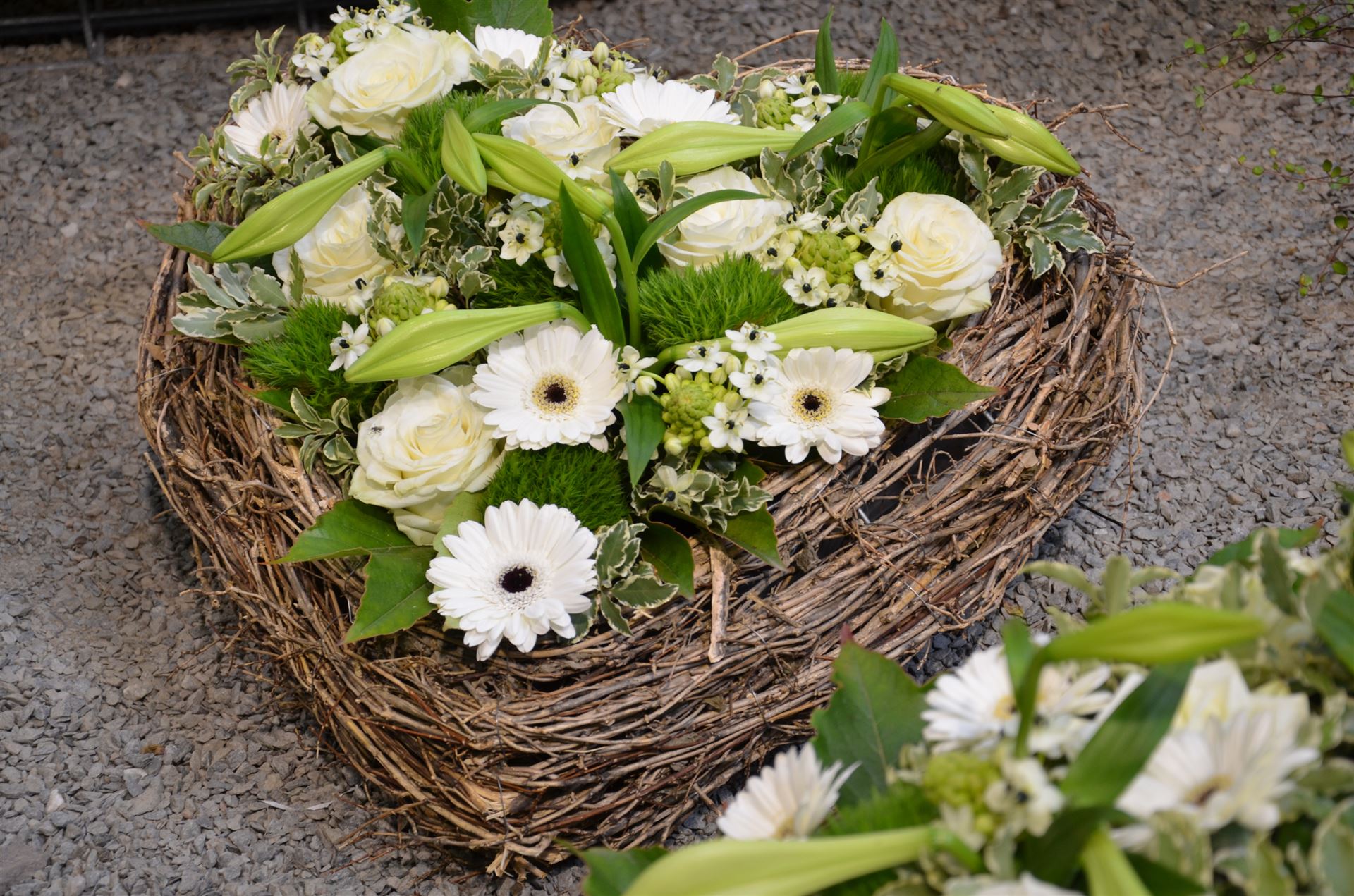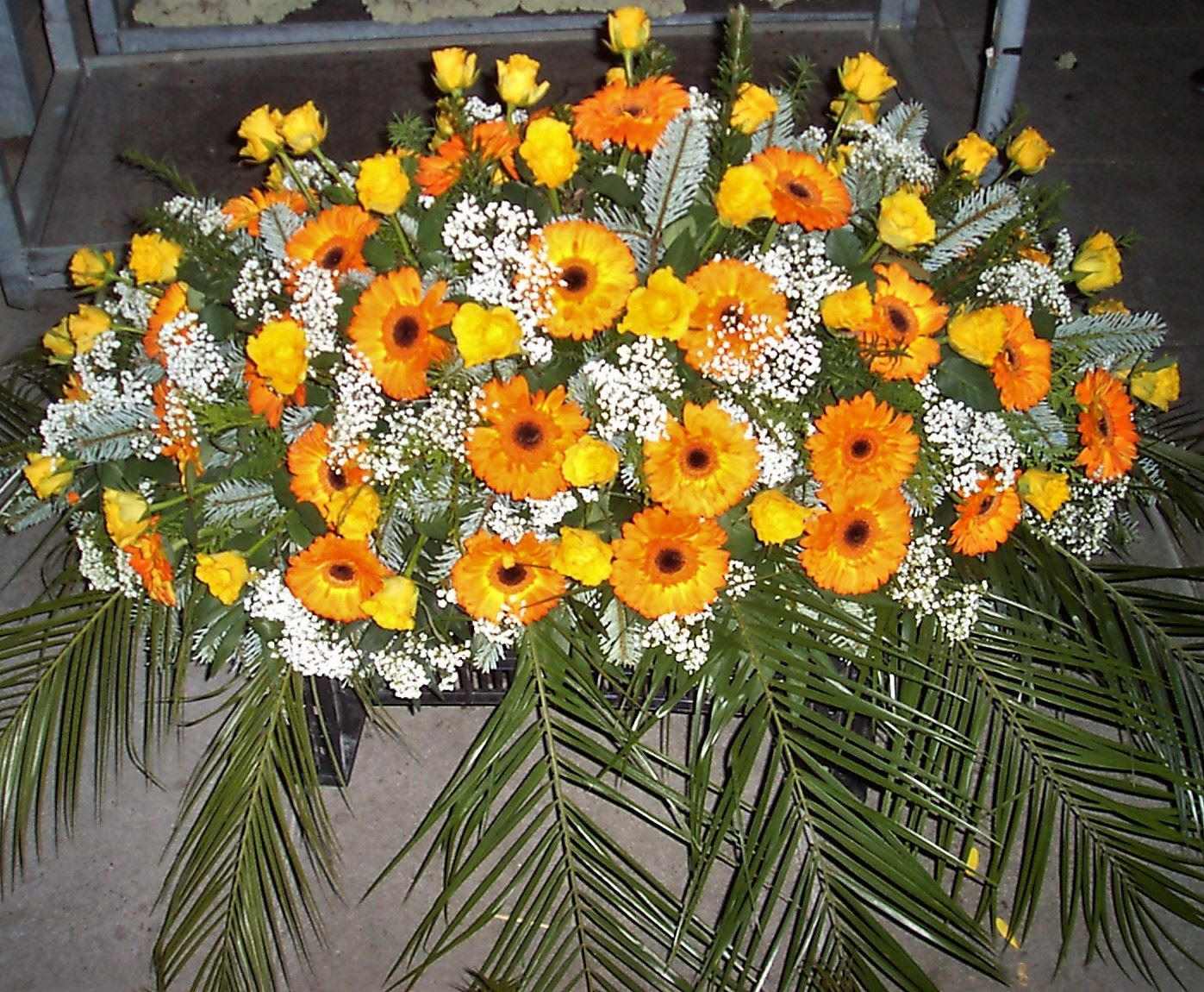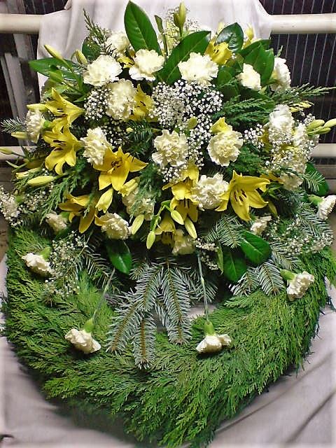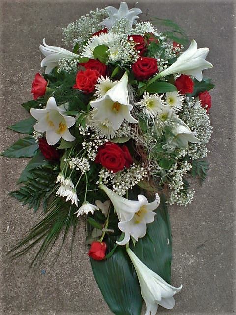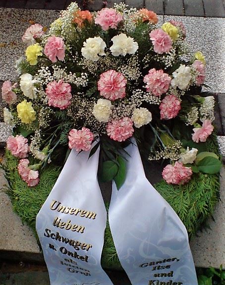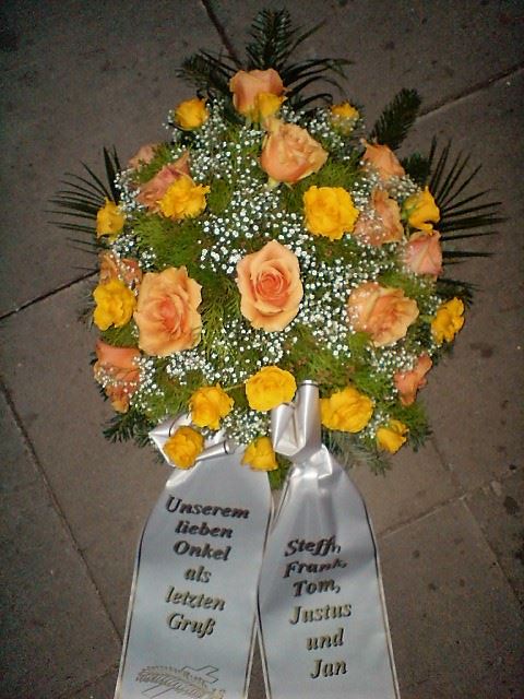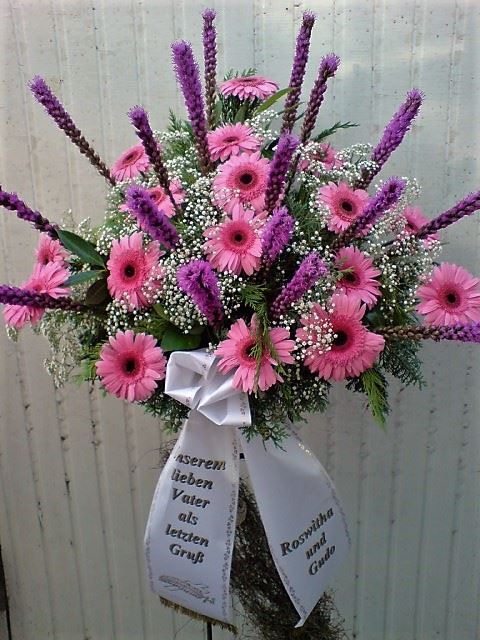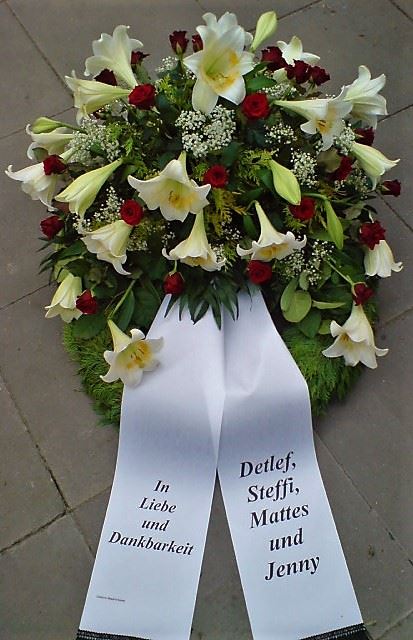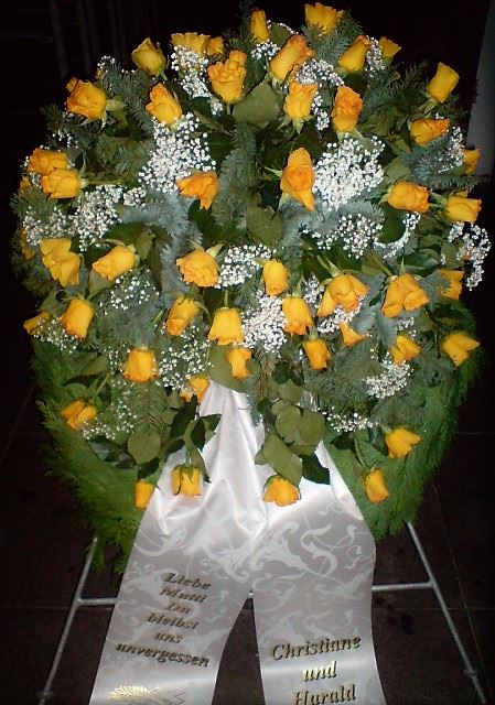 Die Geschichte der floralen Grabbeigaben ist so neu nicht. Bereits die Kelten, Ägypter, aber auch die Germanen ehrten Ihre Toten durch die Zugabe von Gegenständen und Blumen in die Grabstätte. Der Kranz als Gebindeform symbolisierte dabei den unendlichen Kreislauf des Lebens. Der Gedanke mit Blumen den Verstorbenen zu verabschieden, hat sich bis heute erhalten. In der Moderne angekommen, ist es jedoch nicht mehr so, dass es eine reine weiße Trauerblume (früher gerne Calla oder Chrysantheme) sein muss, sondern dass man gern die Lieblingsblumen des Verstorbenen in die engere Wahl nimmt, um somit nochmals eine innige persönliche und besondere Atmosphäre bei den Trauerfeierlichkeiten zu erzeugen.
