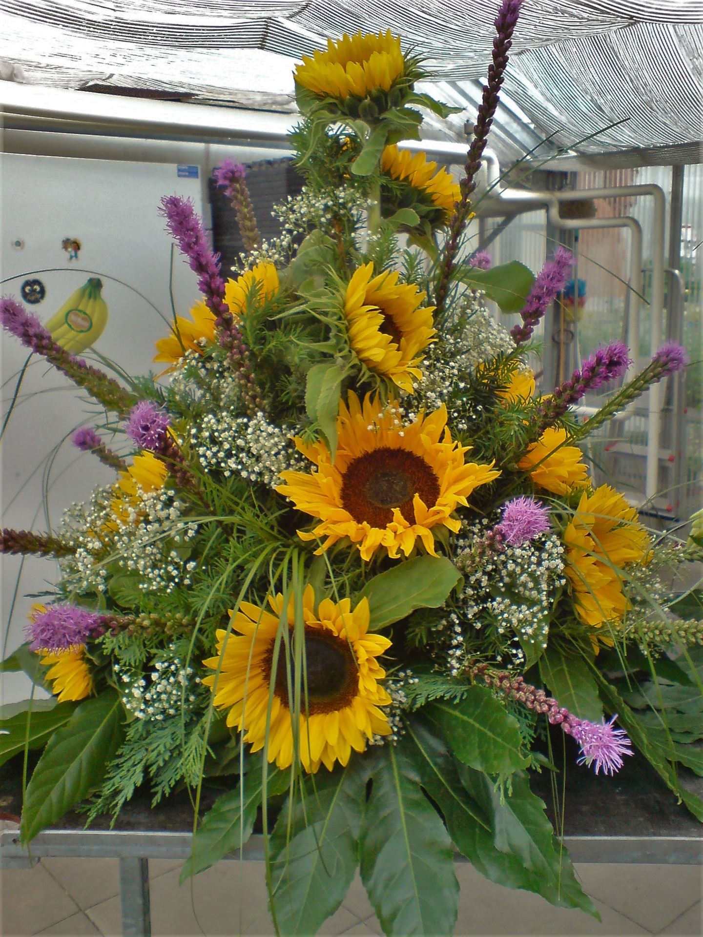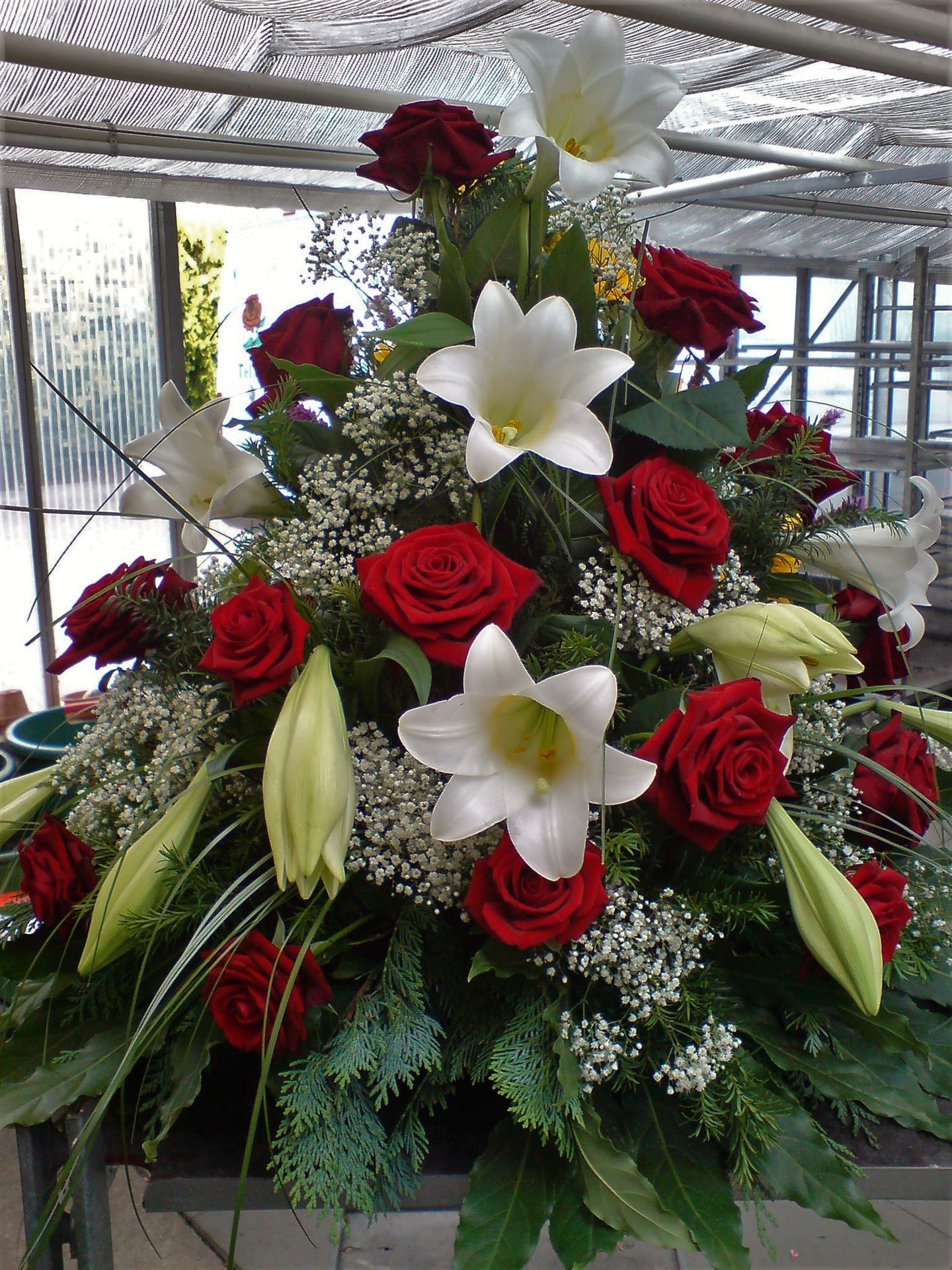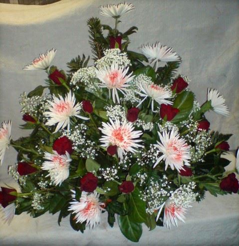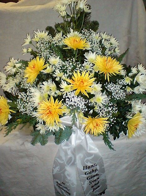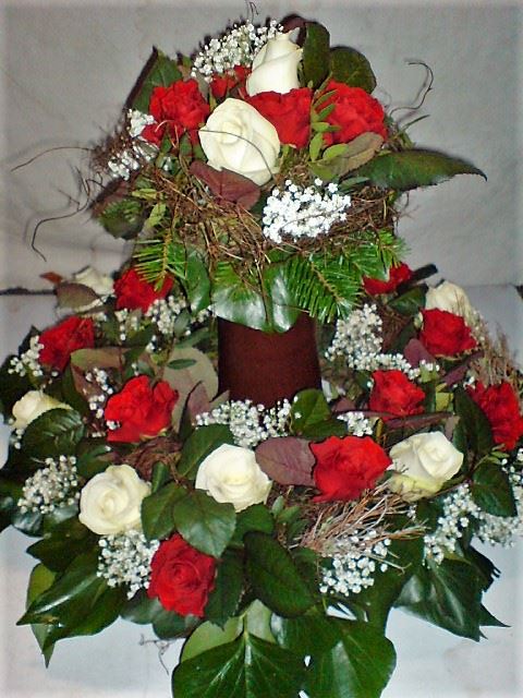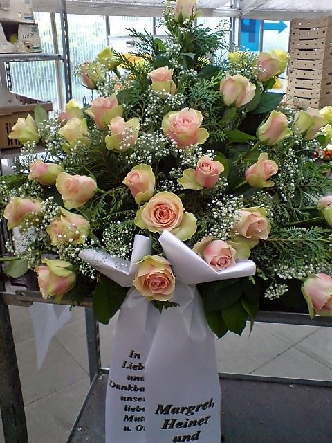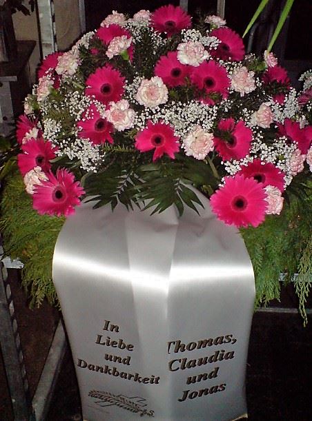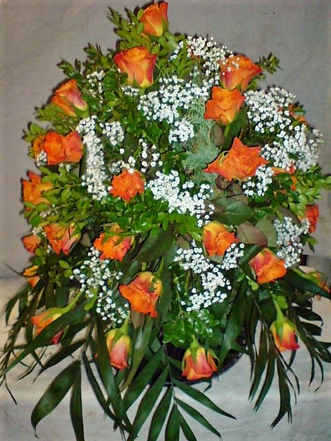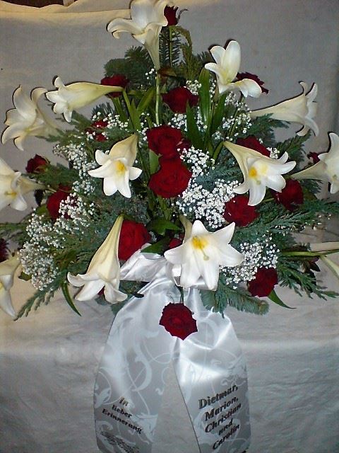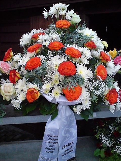 Die Abbildungen tragen eine Bezeichnung, die Ihnen die Kommunikation mit uns vereinfachen soll. Dazu das ausgewählte Bild anklicken. Am linken unteren Bildrand steht die Bildnummer. Also einfach diese Nummer per e-mail oder telefonisch mitteilen. Unsere erfahrenen Floristinnen sind in der Lage, Ihnen genau das Gesteck Ihrer Wahl zu binden.