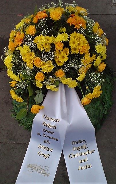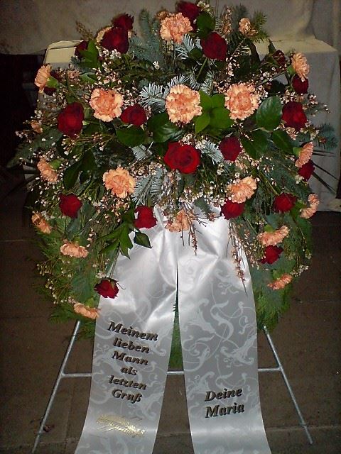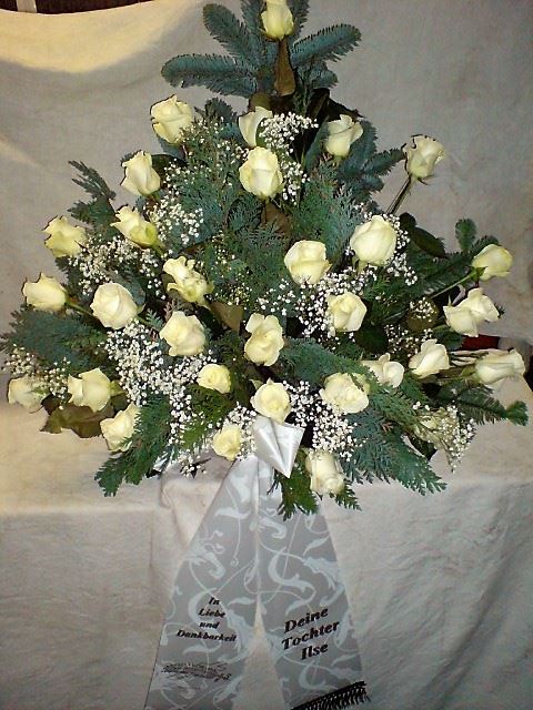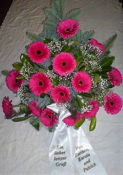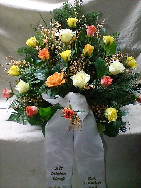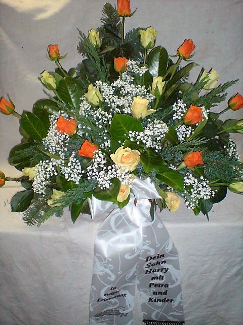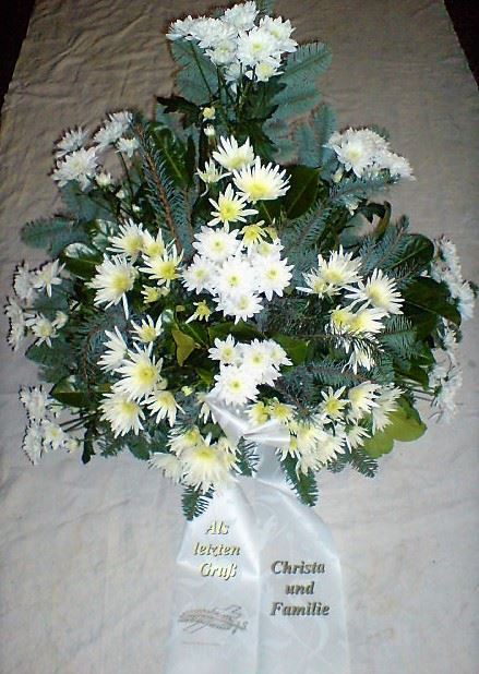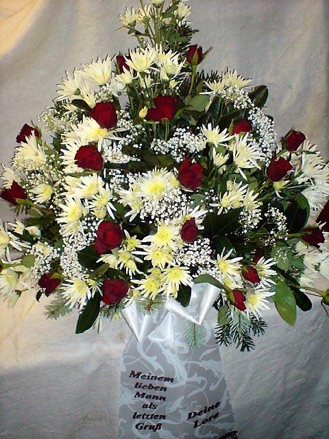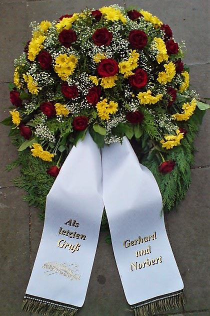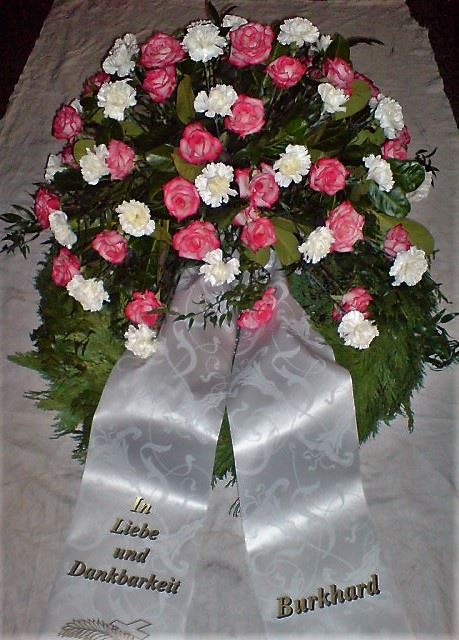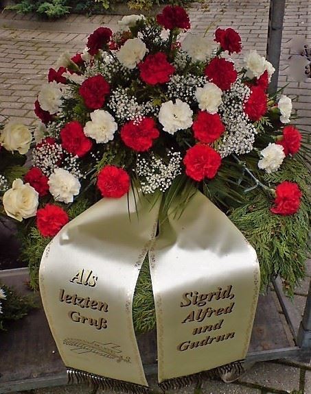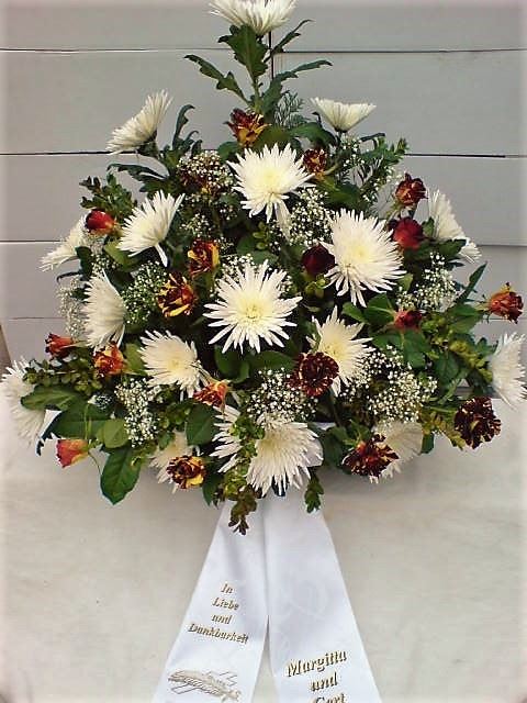 Die Geschichte der floralen Grabbeigaben ist so neu nicht. Bereits die Kelten, Ägypter, aber auch die Germanen ehrten Ihre Toten durch die Zugabe von Gegenständen und Blumen in die Grabstätte. Der Kranz als Gebindeform symbolisierte dabei den unendlichen Kreislauf des Lebens. Der Gedanke mit Blumen den Verstorbenen zu verabschieden, hat sich bis heute erhalten. In der Moderne angekommen, ist es jedoch nicht mehr so, dass es eine reine weiße Trauerblume (früher gerne Calla oder Chrysantheme) sein muss, sondern dass man gern die Lieblingsblumen des Verstorbenen in die engere Wahl nimmt, um somit nochmals eine innige persönliche und besondere Atmosphäre bei den Trauerfeierlichkeiten zu erzeugen.
