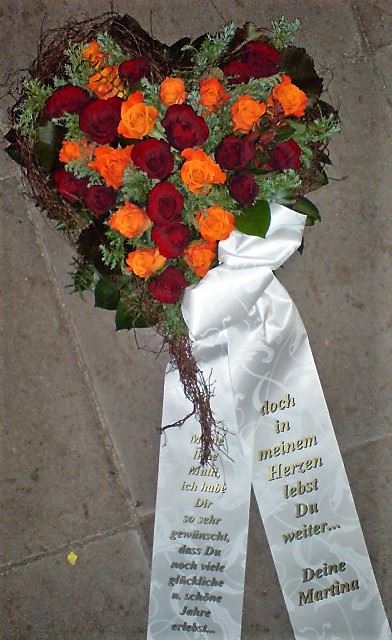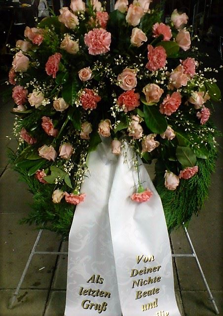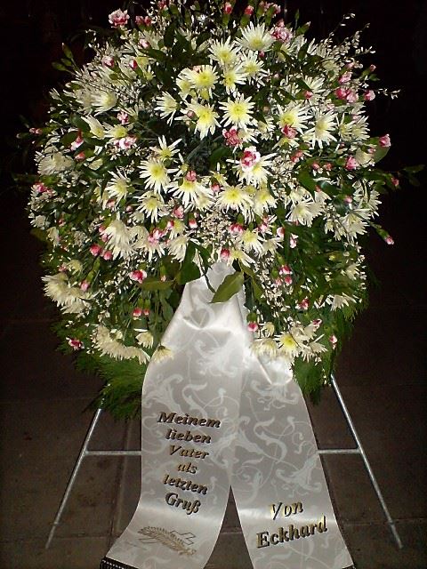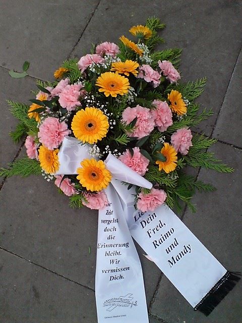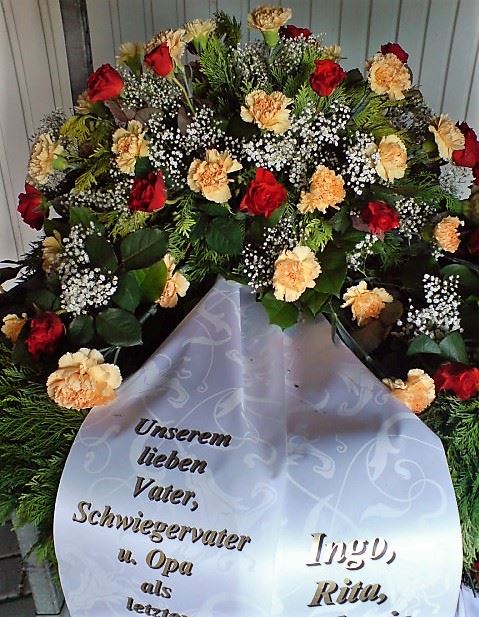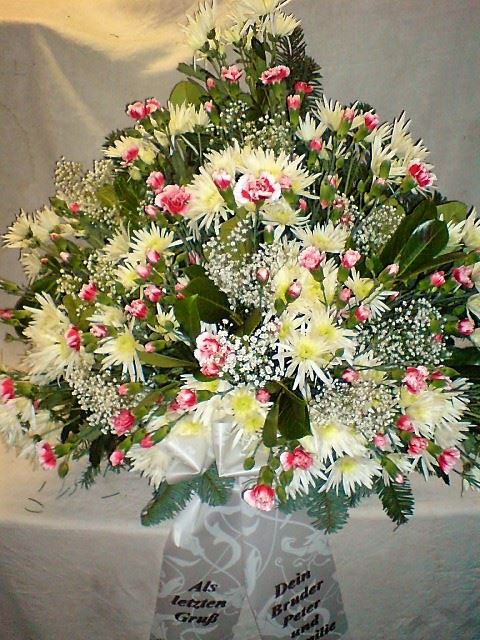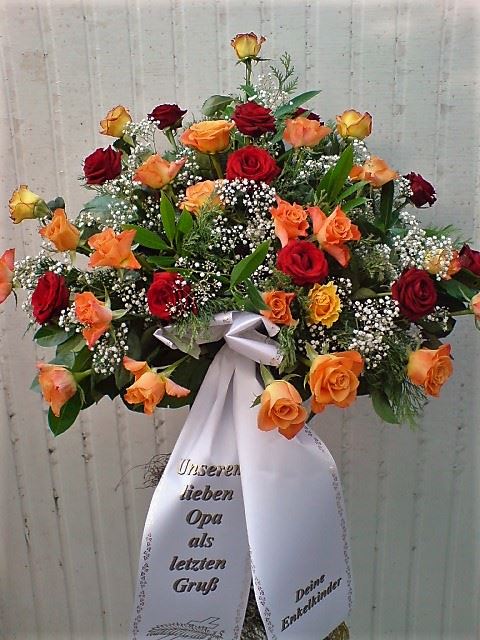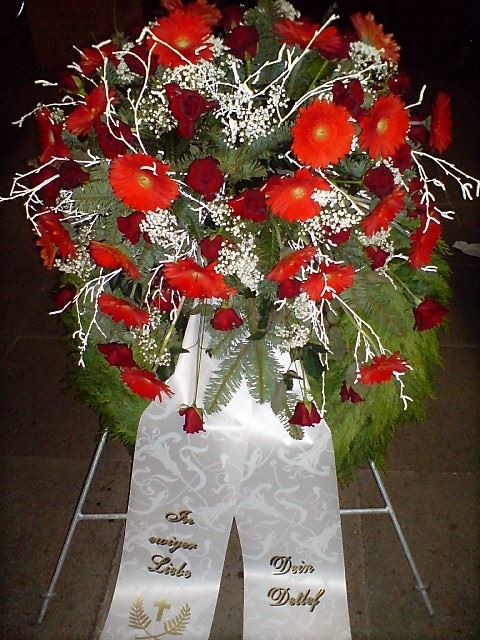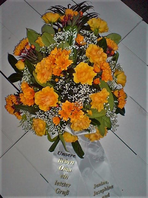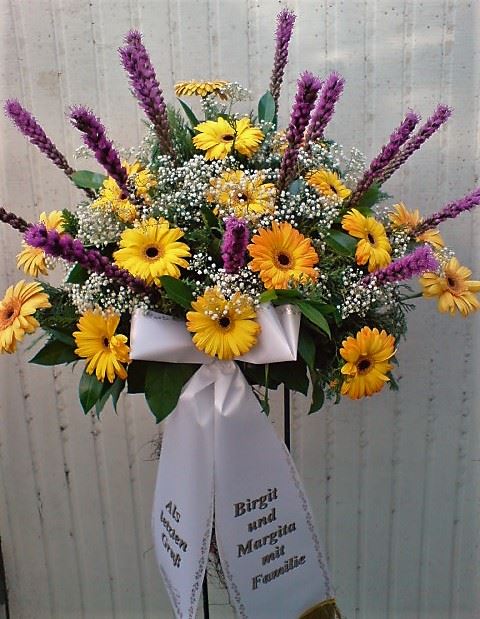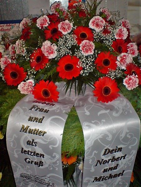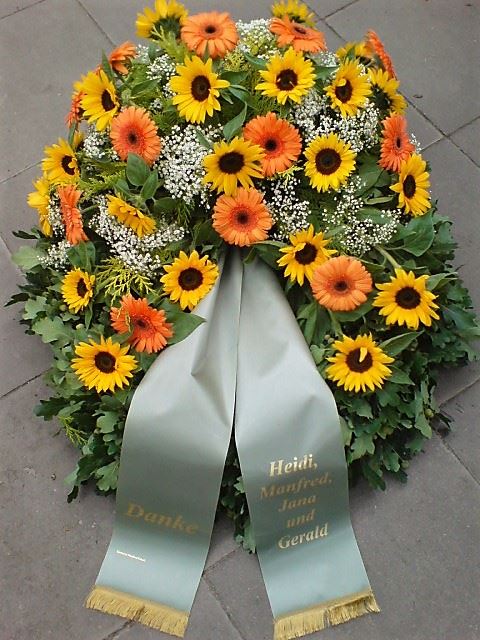 Die Geschichte der floralen Grabbeigaben ist so neu nicht. Bereits die Kelten, Ägypter, aber auch die Germanen ehrten Ihre Toten durch die Zugabe von Gegenständen und Blumen in die Grabstätte. Der Kranz als Gebindeform symbolisierte dabei den unendlichen Kreislauf des Lebens. Der Gedanke mit Blumen den Verstorbenen zu verabschieden, hat sich bis heute erhalten. In der Moderne angekommen, ist es jedoch nicht mehr so, dass es eine reine weiße Trauerblume (früher gerne Calla oder Chrysantheme) sein muss, sondern dass man gern die Lieblingsblumen des Verstorbenen in die engere Wahl nimmt, um somit nochmals eine innige persönliche und besondere Atmosphäre bei den Trauerfeierlichkeiten zu erzeugen.